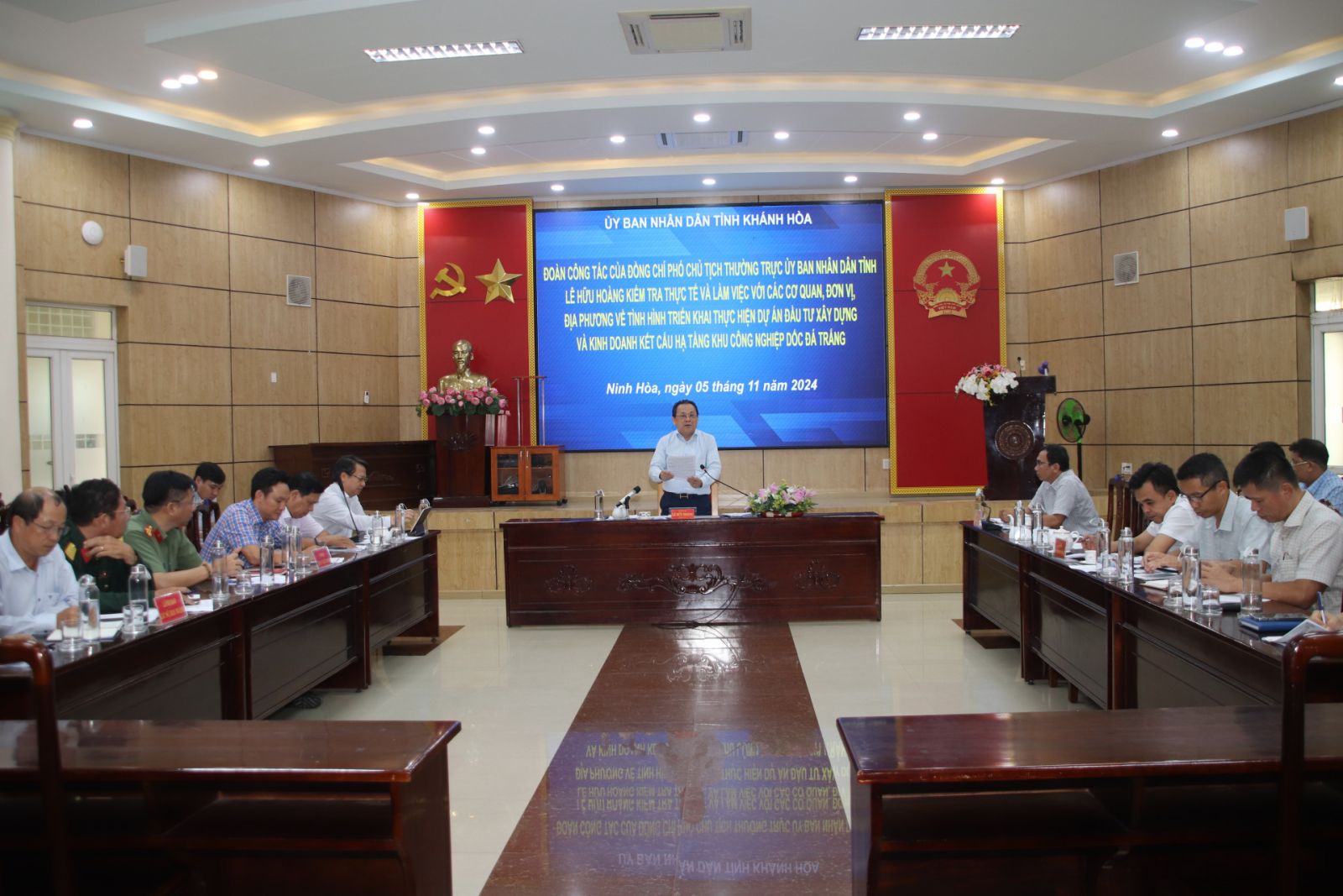 Ngày 5-11, ông Lê Hữu Hoàng - Phó Chủ tịch Thường trực UBND tỉnh Khánh Hòa cùng lãnh đạo các sở, ngành và địa phương đã kiểm tra thực địa và làm việc với đơn vị, địa phương về tình hình triển khai thực hiện Dự án Xây dựng kết cấu hạ tầng Khu công nghiệp Dốc Đá Trắng (dự án Khu công nghiệp Dốc Đá Trắng) tại xã Vạn Hưng (huyện Vạn Ninh) và xã Ninh Thọ (thị xã Ninh Hòa).